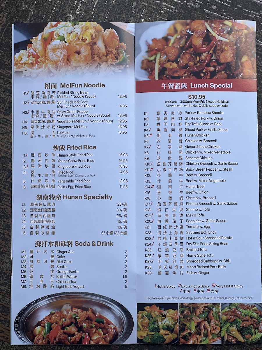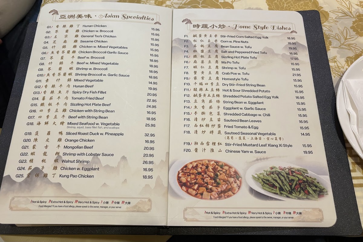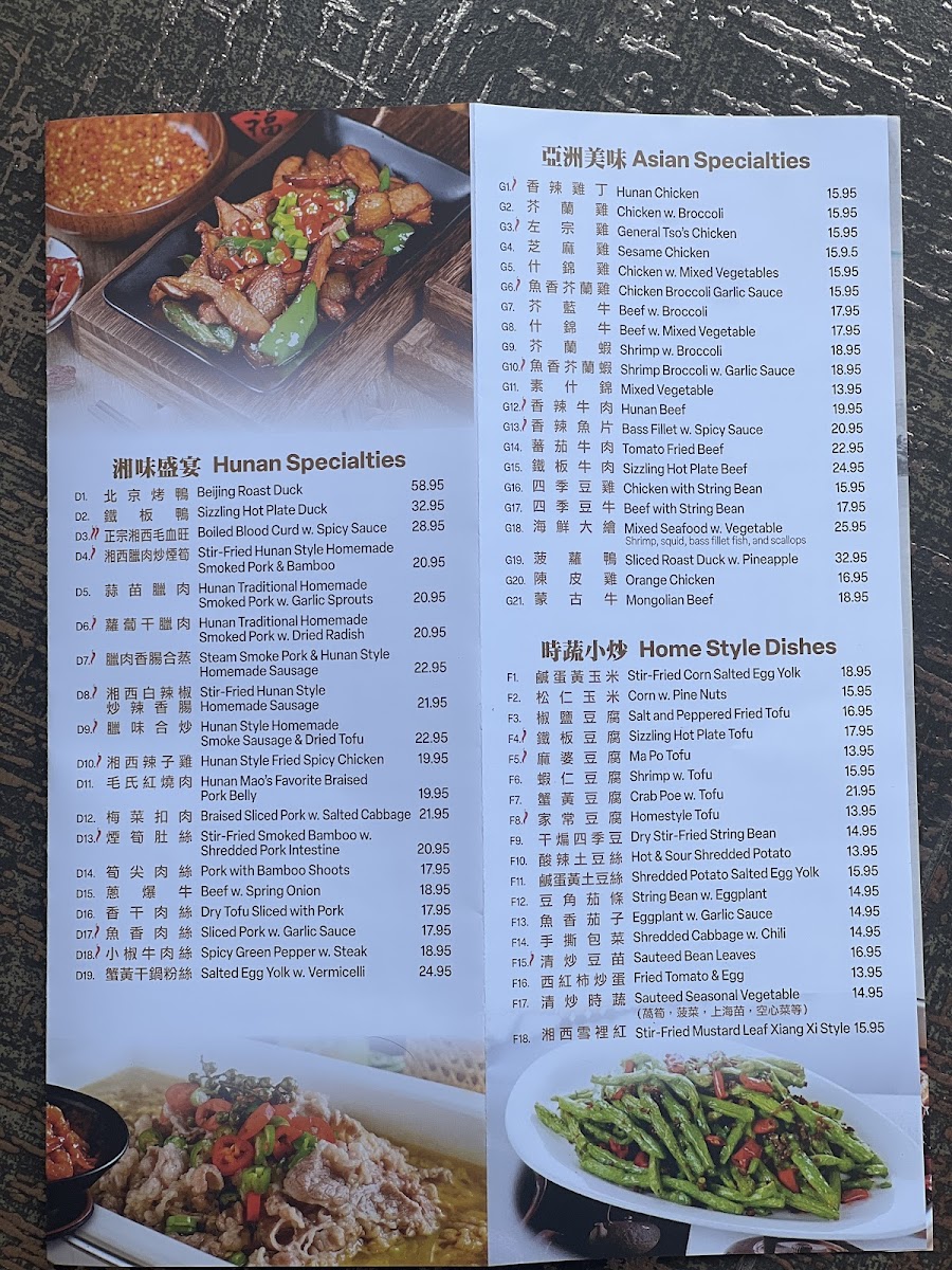 Many of the dishes carry a subtle heat and complex seasoning, typical of Hunan cuisine, inviting diners to savor layers of flavor instead of just straightforward spice. You’ll find a variety of preparations including steaming, stir-frying, and simmering, offering something for different appetites and moods. Standout options like Singapore Fried Rice and Sizzling Hot Plate Duck provide familiar yet distinctive tastes, fitting well with the cozy, inviting atmosphere of the restaurant.
